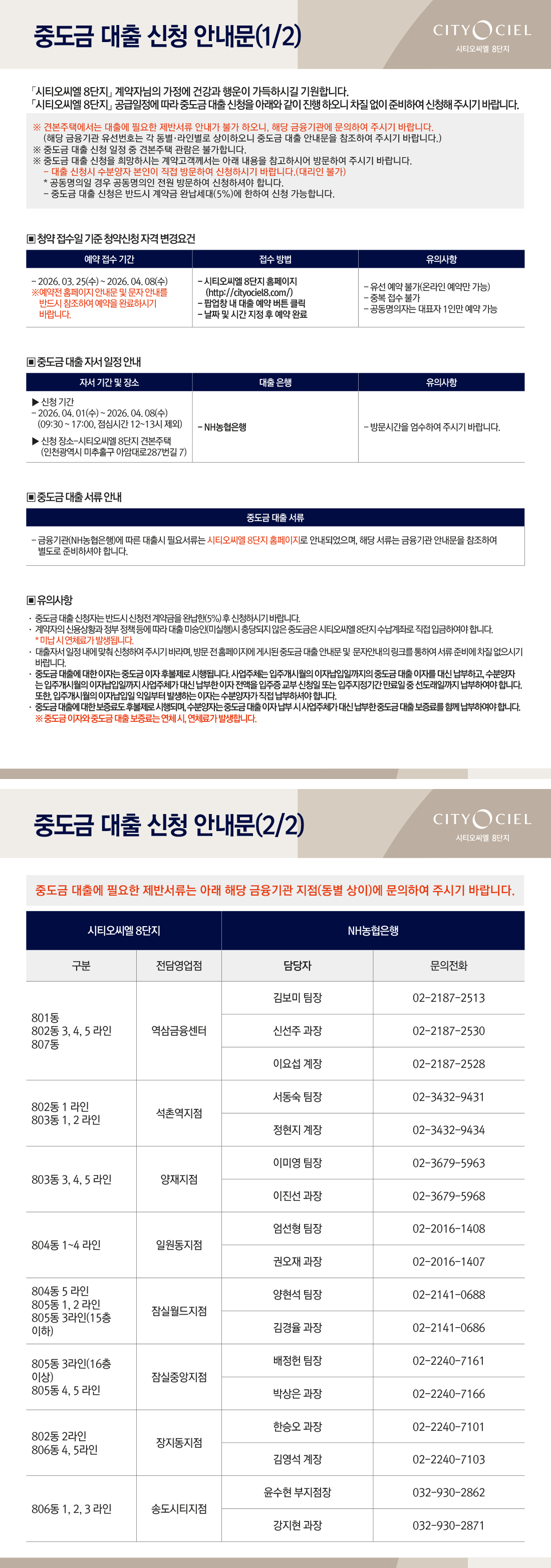 NH 농협 중도금 대출 안내문